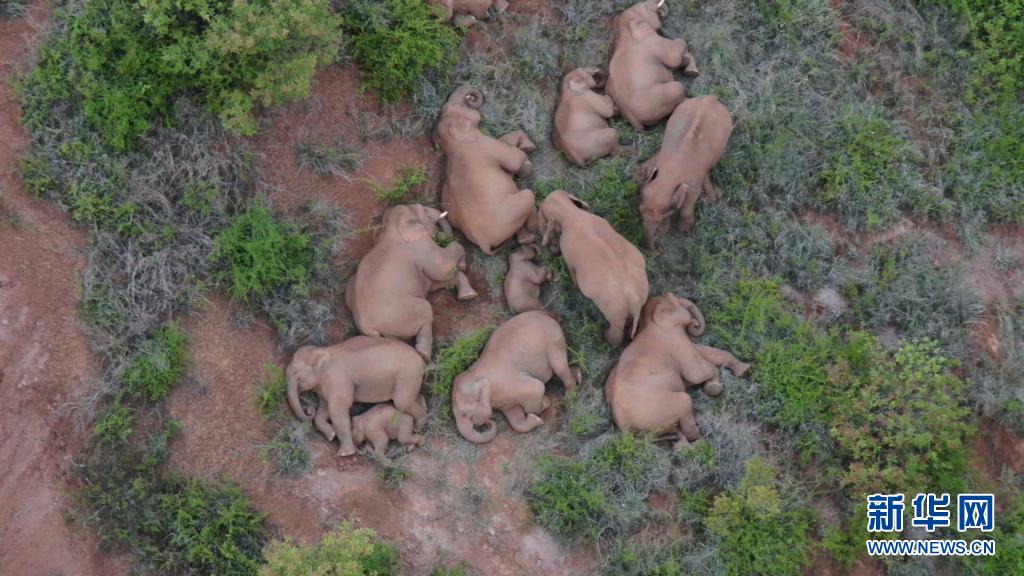 6月17日在玉溪市易门县十街乡拍摄的象群(无人机视频截图)。