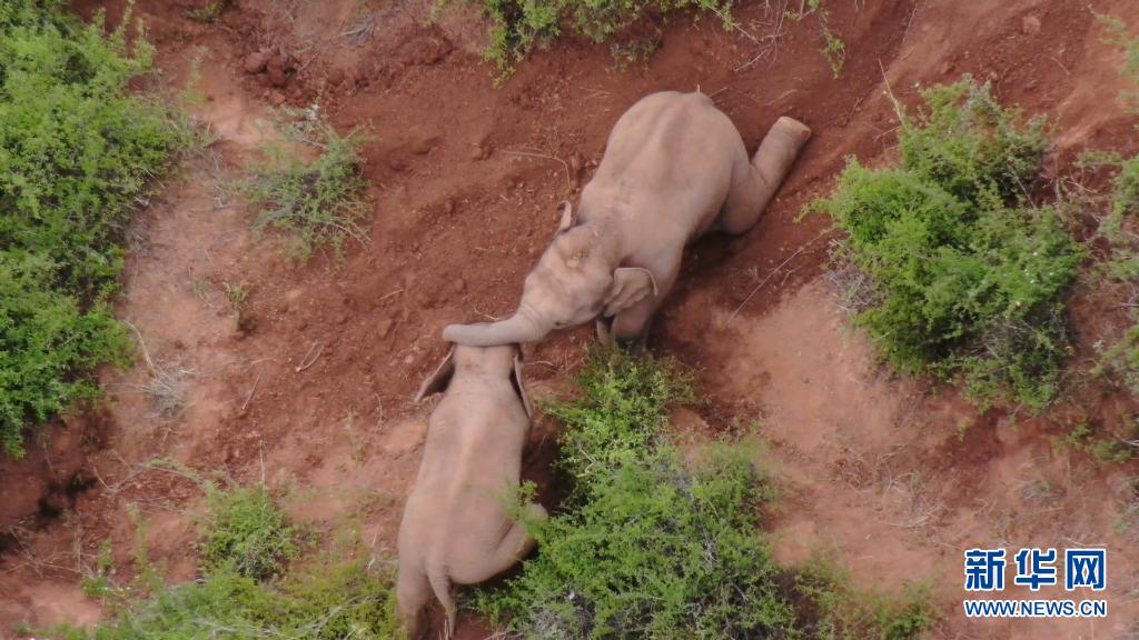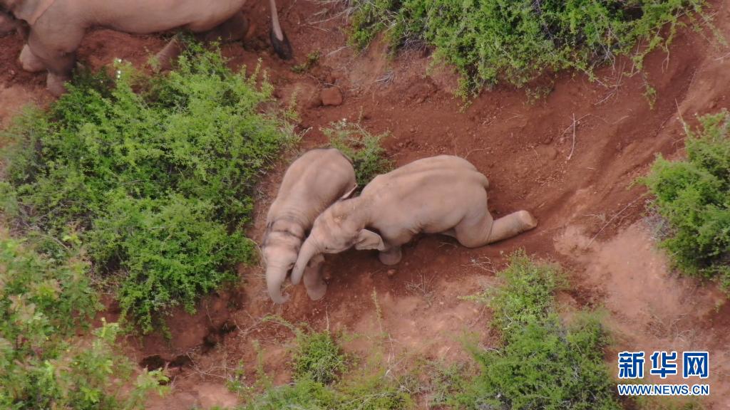 6月17日在玉溪市易门县十街乡拍摄的小象嬉戏打闹瞬间(无人机视频截图)。