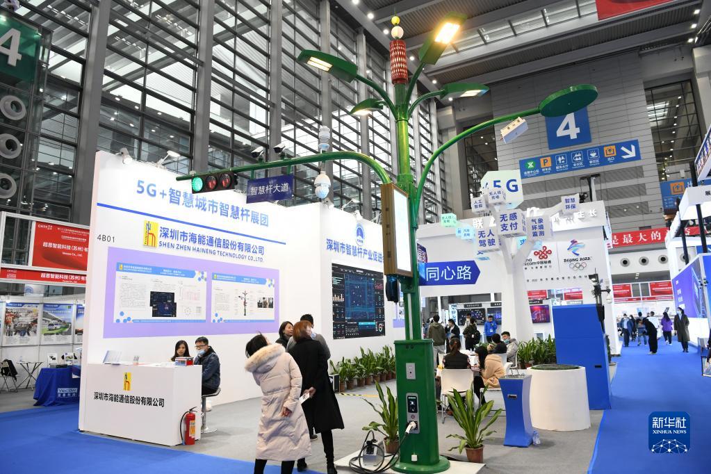 这是第二十三届高交会上展出的多功能智慧杆(12月27日摄)。新华社记者 梁旭 摄