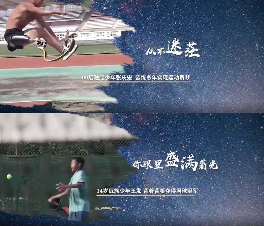 14岁的佤族男孩王发,背着背篓夺得网球冠军,而为了站上赛场,他每天挥拍练习不低于7000次。独腿少年张庆宏苦练多年,从游泳到田径,他不断超越自我,用运动员梦点亮了自己的人生。还有组成梦想合唱团的农村学生们,毕业后返乡支教的彝族小伙苏正民……