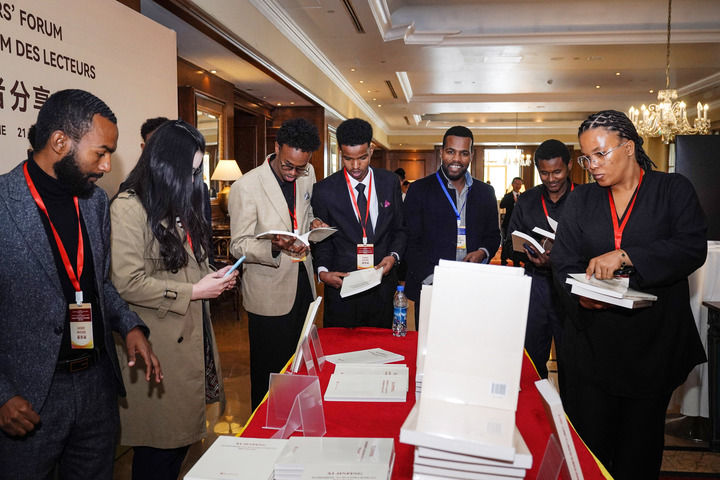 8月21日,嘉宾在埃塞俄比亚首都亚的斯亚贝巴举行的《习近平关于尊重和保障人权论述摘编》读者分享会期间翻阅《习近平关于尊重和保障人权论述摘编》。新华社记者 韩旭 摄