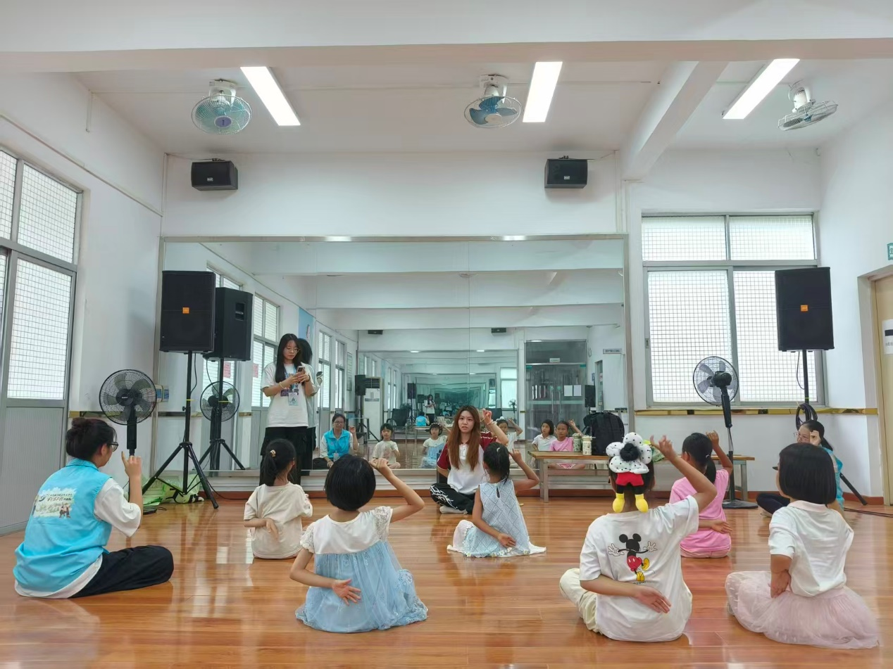 图为实践队队员在教孩子们舞蹈的过程。吴晨菲供图