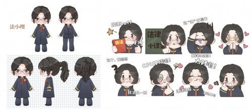 除了视频作品,团队还设计了法治主题虚拟IP“法小理”。这一形象以蓝色法袍为主体造型,融合青年气质与法律符号,被应用于表情包、校园海报、互动展板等多种载体,形成可持续传播的视觉识别体系。团队成员表示:“我们希望‘法小理’能成为年轻人身边的法律朋友,让法条有温度、有表情。”