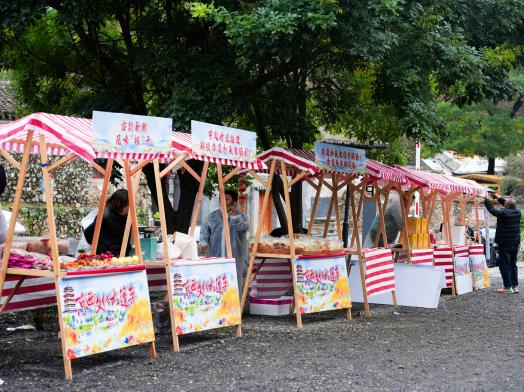 非遗项目“燕歌戏”在市集现场展演,传统唱腔与古村背景相融,让参与者在逛吃之余,近距离感受非遗文化的魅力,轻松实现“赏技艺、品美味、购特色”的三重收获。