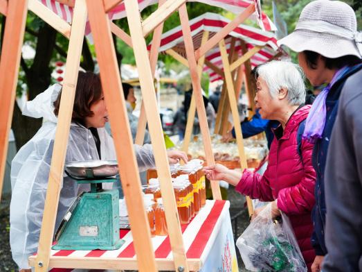 不用辗转多地寻觅京西特色,活动现场的市集已将“烟火气”与“文化味”打包呈现。这里既有承载京西记忆的文创产品、林场特色,也有村民自家产的山货,搭配咖啡的醇香、烤面包的焦香、烤玉米的甜香,满足味蕾的多重期待。