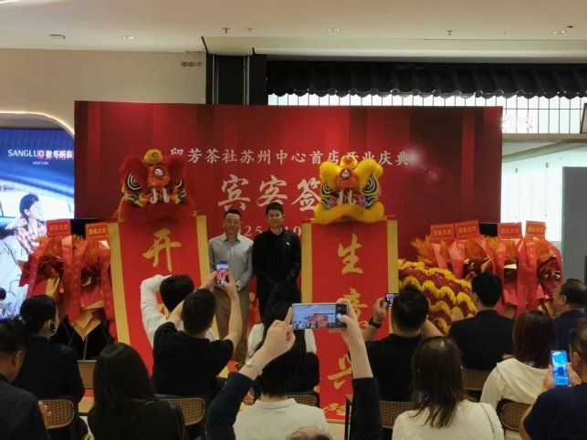 10月18日上午,位于江苏地标建筑——苏州中心的商场南三楼鼓乐齐鸣、嘉宾云集,留芳茶社苏州中心店开业典礼在此隆重举行。