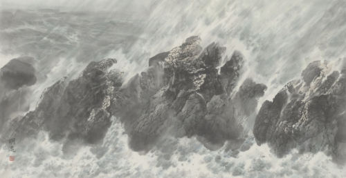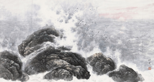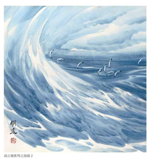 中国画对水的表现,可追溯到新石器时代。其彩陶纹饰中,以简洁质朴的线条加以表现。秦汉壁画、帛画中,多以曲线、折线象征河流、水波,服务于整体叙事。魏晋至隋唐,山水画从人物画中独立出来,水的表现依旧附属于山,仍以线的表现为主。东晋顾恺之的《洛神赋图》、隋朝展子虔的《游春图》等作品都以线条勾勒水纹形态。唐宋时期,随着山水画的成熟,水的表现愈加精细,程式化表现为主要特征,最具代表性的是南宋《马远水》十二图,用线条精密表现水波纹、细浪等形态,这是中国画历史上画水的第一座高峰。元明清时期,水墨写意画兴盛,水的表现在留白和极简线条上进一步探索,依旧呈现出较为程式化的表现形态。近现代画家打破传统范式,将西方绘画的光影、透视与传统笔墨结合,拓展了水的表现维度。比如徐悲鸿、傅抱石在表现江河、瀑布时,融入写实元素,增强了水的体积感和力量感。当代以专门画海为己任的宋明远,专题聚焦海洋这一宏大水体,继承传统,中西合璧,创新发展,创造出一系列表现海水的技法,其笔下的海水磅礴、深邃、浩瀚、汹涌,形态变幻莫测,气势惊天动地,把水的表现从传统的江河湖泊,扭转面向更广阔的海洋,其成书于公元2025年的《宋明远海水画谱》,以五百图的容量,赋予海水题材的新时代特质与文化内涵,与时代审美同步,铸就中国画历史上画水的又一座高峰。