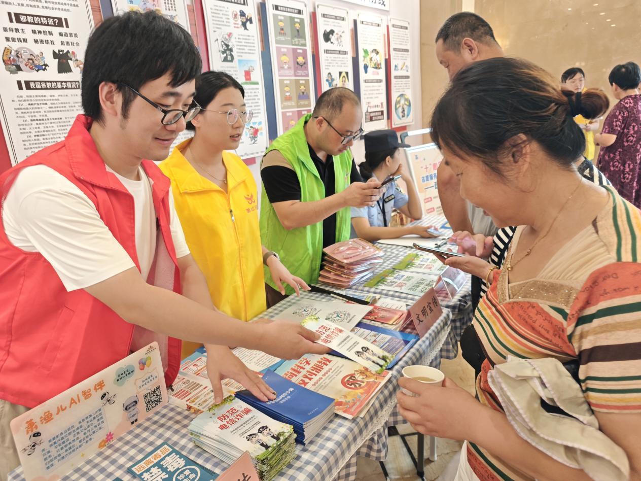 每月10号是社区的便民服务日,渔浦社区时常联合多家便民服务机构,在党群服务中心广场开展“便民+反诈”双主题活动,同时包括理发、洗眼镜、清洗锅具、衣服缝补、健康咨询等便民服务,使得服务摊位前人头攒动,而反诈宣传区则通过“案例展板”“反诈宣传册”等方式,让居民增加防骗意识,活动累计发放宣传手册300余份。
