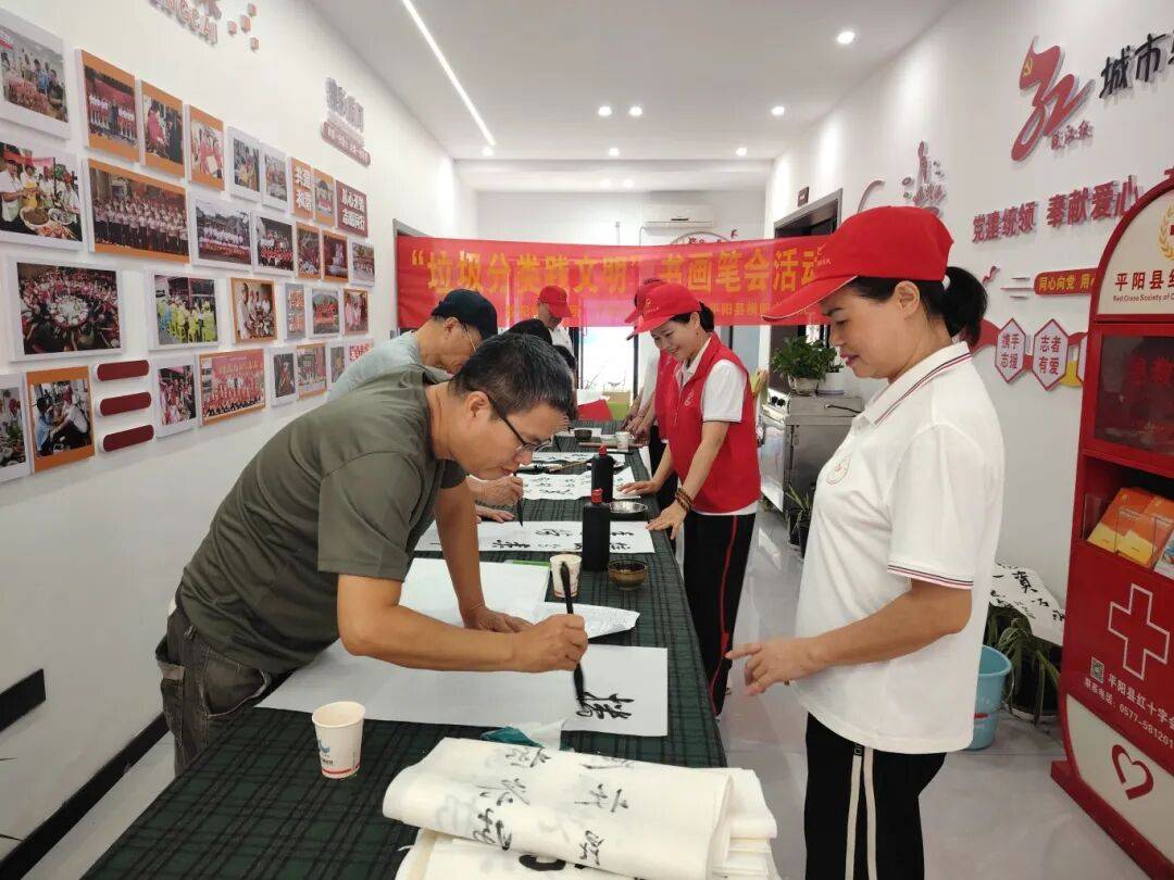 活动现场,平阳县横阳书画院的书画家们凝神挥毫,将“垃圾要分类,资源要利用”“垃圾分类,举手之劳。”“变废为宝,美化家园”等通俗易懂的垃圾分类标语,转化为一幅幅笔力遒劲的书法作品。墨色在宣纸上晕染,环保理念也随之落地生根,引得现场观摩群众驻足欣赏,不时发出赞叹。