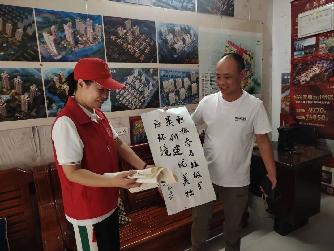 书画创作完成后,平阳县海鸥义工队的志愿者们迅速行动,携带这些饱含墨香的书法标语作品走上街头,向沿街商户、过往行人分发。志愿者们一边递出作品,一边耐心讲解垃圾分类的政策法规、分类标准及日常投放技巧,用生动的语言化解群众对垃圾分类的疑惑,鼓励大家从身边小事做起,主动参与分类实践。