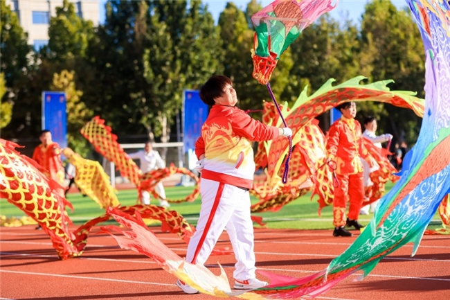 开幕式上,魏善庄镇以“文化南中轴”为主线,融合传统与现代,呈现了一场别开生面的文化体育盛宴。同乐会、彩带龙、太极扇等民俗表演与大鼓武术等群众文化节目交相辉映,共同串联起一条熠熠生辉的南中轴文化带,为这座新市镇注入了独具一格的人文风采。