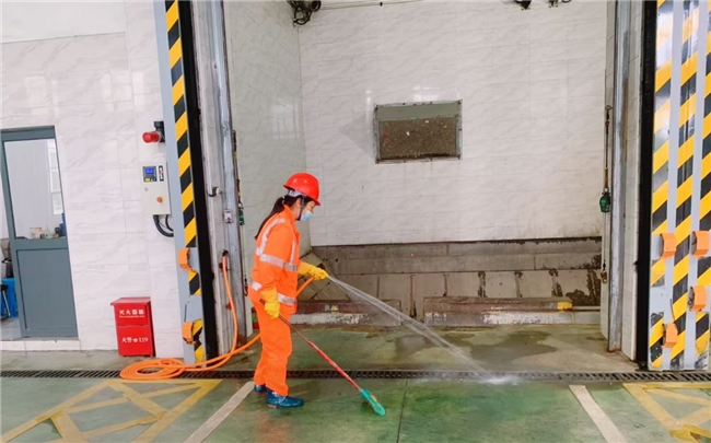 除了卫生清理,转运站员工还每日对中转站内外进行全面消毒杀菌处理,保障周边环境的卫生安全。