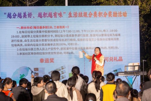 19时整,主题晚会正式启动。宜春经开区分类工作领导小组办公室工作人员通过PPT演示、现场问答等形式,向居民详细解读分类积分兑换规则,让“分类有回报、环保有实惠”的理念深入人心。活动现场还特别设置幸运抽奖环节,25名积极参与积分活动的居民喜获环保生活大礼包,实用的绿色家居用品赢得在场群众连连称赞。