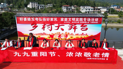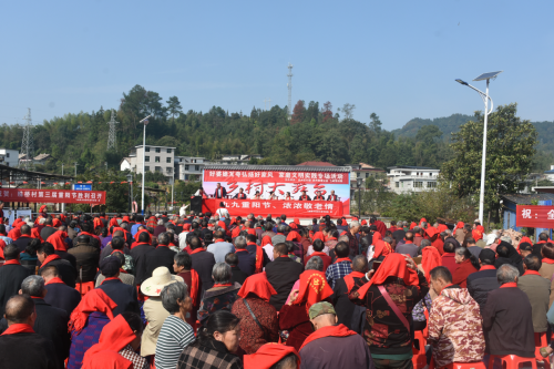 伴随着庄严的国歌声,本次重阳敬老活动正式拉开帷幕。飞剑潭乡相关领导、殊桥村“两委”干部、驻村工作队与全村老年朋友们欢聚一堂,共话家常、共庆佳节。活动现场,殊桥村党支部书记首先向在场老年朋友致以节日的问候,他在致辞中深情回顾了老人们为村庄建设、产业发展、家风传承所付出的辛劳与贡献,强调“村庄的今天离不开老人们的奋斗,敬老爱老是村风建设的核心底色”,朴实话语间满含对老年群体的尊重与感恩。随后,飞剑潭乡领导、村老年协会代表先后发言,从政策关怀、社区服务、晚年生活等多个维度,向老人们传递社会各界的关心,让现场暖意融融。