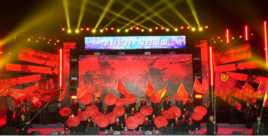 晚会在激昂澎湃的开场曲《旗开得胜》中正式启动,瞬间点燃全场热情。鼓舞《铁血军魂》以铿锵节奏展现力量之美,朗诵《五秩先锋诵》则用声音传递信念与荣光。古典舞《一条大河》带来柔美典雅的意境,而音乐剧《荣光里的回响》深情讲述动人的青春故事。