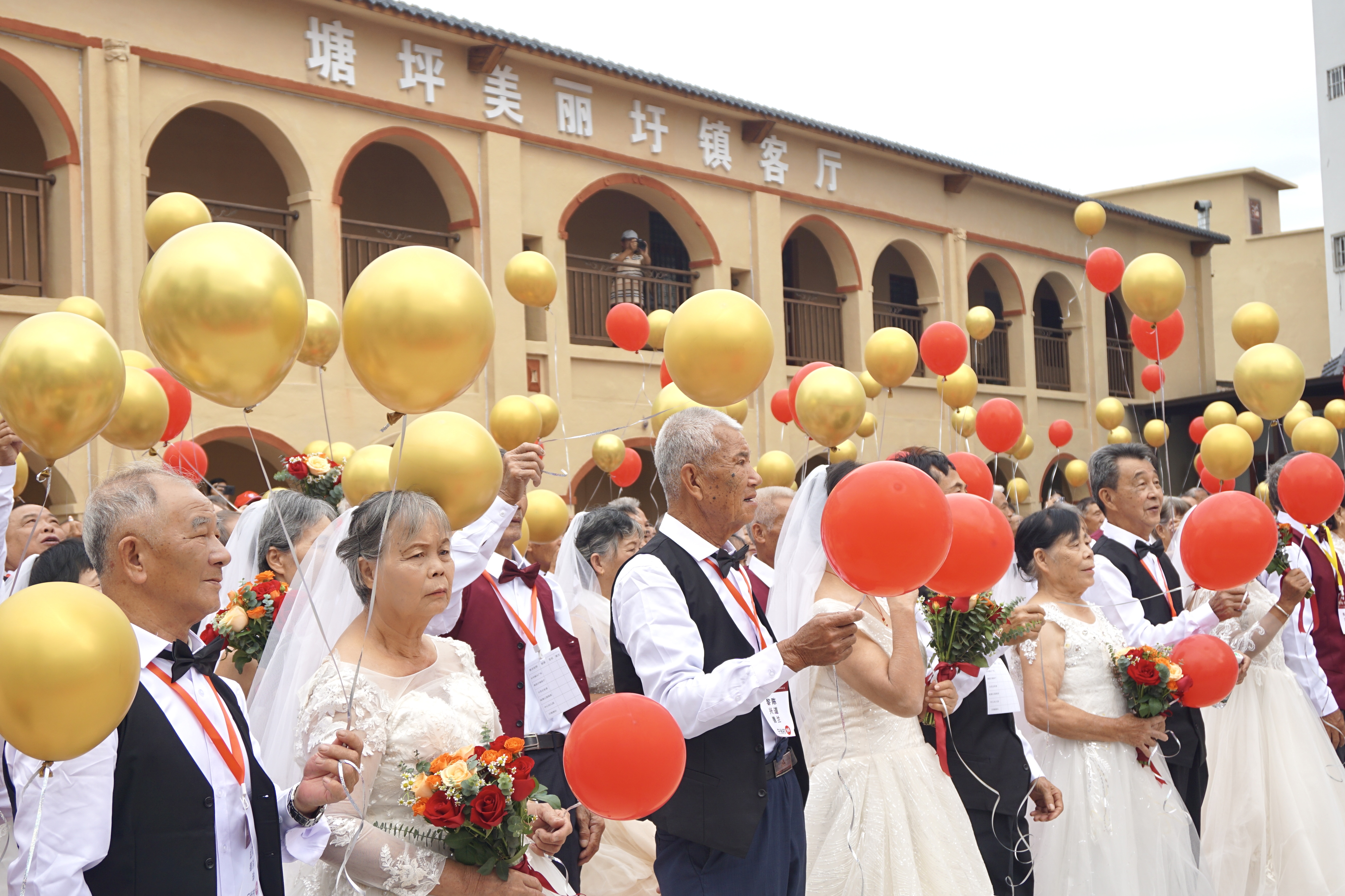 全国“敬老月”之际,依托乡村振兴及“百千万”三年初见成效的工作成果,发起“皓首塘坪·与子成说”主题活动。活动特意遴选 99 对金婚长者与 1 对新婚夫妇,通过摄影记录与家宴欢聚定格温情瞬间,让敬老美德在时光中代代相传。