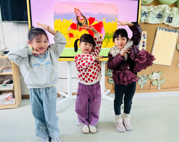 随后,一场别开生面的“民族舞蹈风情展示”将活动推向高潮。孩子们兴致勃勃地登上小舞台,模仿和学习不同民族的代表性舞蹈动作。在举手投足间,他们不仅感受到了蒙古舞的豪迈、傣族舞的柔美、维吾尔族舞的热情,更在欢快的节奏与韵律中,直观领略到中华文化的多样性与包容性。这一环节通过艺术的形式,深化了孩子们对民族多样性的理解,使他们懂得各民族艺术的交流互鉴正是民族团结友爱、和谐共处的生动写照。