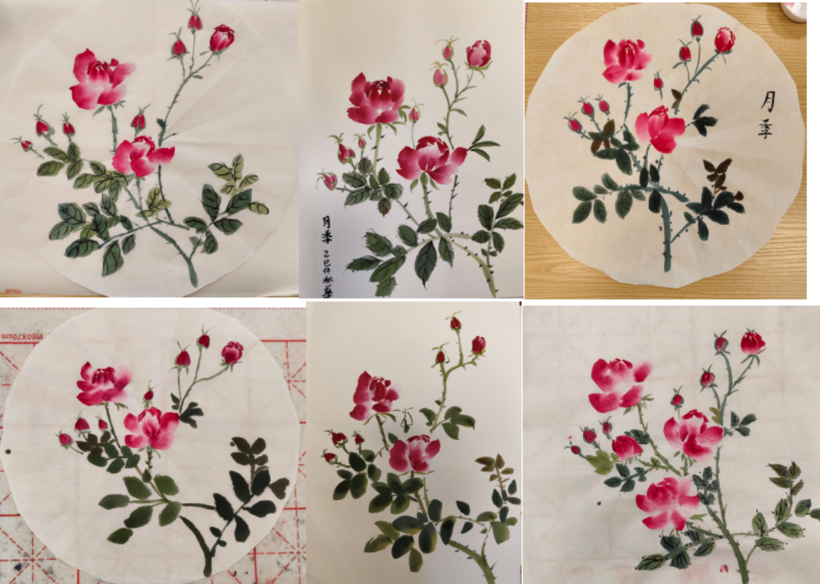 课堂上,在老师的示范教学下,学员们从梅花"铁骨冰心"的枝干勾勒入手,逐步掌握了菊花"傲霜独立"的写意技法、兰花"清雅高洁"的叶态表现、月季"四季芬芳"的叠彩晕染,以及杜鹃"烂漫山野"的构图要诀。“每节课都收获满满!”学员刘阿姨拿着自己的作品《杜鹃花图》激动地说,"老师把复杂的技法分解得清清楚楚,让我们这些零基础的老人也能画出满意的作品。"