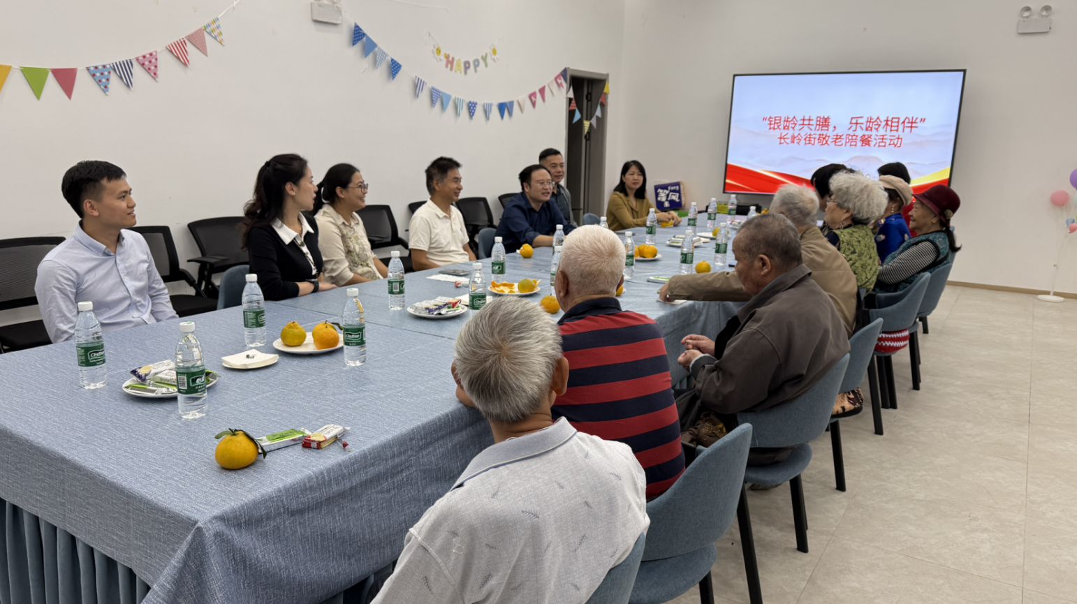 10月29日上午,长岭街颐康中心在和苑南社区和苑二期长者饭堂(和苑社区饭堂)举办一场以“银龄共膳,乐龄相伴”为主题的敬老陪餐活动,为长者们送上节日的温暖与祝福。午餐时间,主办方特意邀请了黄埔区民政局副局长洪耿裕、长岭街道二级调研员黄金增、长岭街道四级调研员李辉、公共服务办负责人、发展中心负责人、运营机构代表及居民代表参与活动,同坐一桌,共品佳肴。