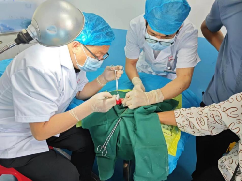 图为县级医院对口支援专家带领乡镇卫生院医师开展一级手术