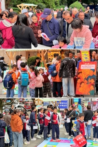 系列活动围绕“筷乐同行·宠邻友好”“寻味贵阳·文明同行”“守法规知礼让·安全文明出行”“一粥一饭思不易·一言一行守底线”等主题开展,覆盖南明区、云岩区、白云区、花溪区、乌当区、观山湖区等地的多个街道社区,吸引广大街道、社区工作人员、志愿者、非遗传承人以及居民、学生等共同参与。在“文明出行”活动现场,不少家长带着孩子共同体验交通文明飞行棋。孩子在游戏中学习交通规则,家长在互动中强化了自身文明意识,实现了“一个活动带动一家人,一场体验影响一群人”。