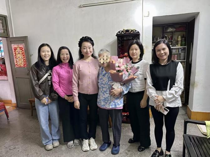 传统节日和老人生日,更是居家养老服务项目传递关怀的重要时刻。2025年5月,91岁的谢婆婆过生日,服务团队特意定制了鲜花和蛋糕登门祝寿,还安排了会粤语的同事陪老人聊天,听老人分享过往趣事,看着老人脸上洋溢的笑容,家属满心感激。重阳节期间,黄埔区退管办领导亲自带队走访慰问了家庭条件较差、独居孤寡的高龄老人黄姨,并送去节日礼包。得知黄姨因不懂线上认证曾导致养老金停发,还面临进口药费负担重等难题,当场安排工作人员小刘负责黄姨后续的养老金认证,叮嘱小刘帮黄姨解决买米、买菜、取快递等生活难题。黄姨眼眶泛红,激动地说:“你们的服务比我的亲人还周到,真是太感谢你们了!”