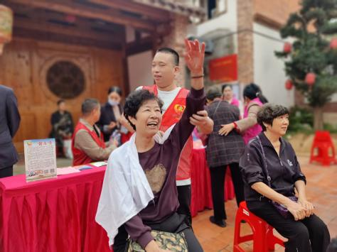 活动同步推出多项便民服务,为老年人健康保驾护航。华厦眼科医院集团莆田眼科医院、莆田雅美佳口腔医院的医护人员现场坐诊,免费为老人提供视力检查、口腔健康评估及血压测量服务;莆田市残联莆善情・智能助残服务中心的志愿者则为老人提供专业中医按摩以及专业补鞋服务,并讲解残疾人相关帮扶政策。贴心的服务让老人们在参与活动的同时,感受到实实在在的健康关怀。
