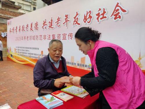 岁岁重阳,今又重阳。在2025年重阳节到来之际,为传承中华民族孝亲敬老传统美德,切实守护老年群体权益,近日,“弘扬孝亲敬老美德 共建老年友好社会”养老领域防范非法集资宣传活动在古街崇功祠成功举办。本次活动由莆田市荔城区民政局、镇海街道文献社区居民委员会联合主办,莆田市涵江区耆涵社工服务中心承办,中国工商银行莆田荔城支行、福建海峡银行、厦门银行股份有限公司莆田荔城支行、中国人寿莆田市荔城区支公司、莆田市残联莆善情•智能助残服务中心、华厦眼科医院集团莆田眼科医院、莆田雅美佳口腔医院协办,为老年人送上一份兼具安全保障与温暖关怀的“重阳厚礼”。