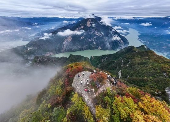 行摄三峡之间,聚焦光影变幻,拍尽万山红叶。摄影创作团队深入三峡,于黎明定格山河云海红叶的壮丽画卷;在瞿塘峡用镜头捕捉“两岸猿声啼不住”的诗意景致;于飞凤峰拍摄巫峡大背峡的雄浑气韵。