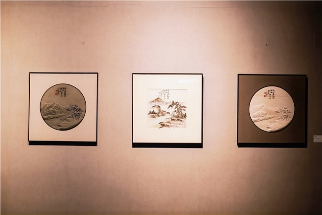 显然,这些画都是林庭芳由心由性的表达,也因真意流露而动人。《高秋行吟图》这幅画的石雕作品外,朋友还想把原画一起买走,当时林庭芳觉得是自己心仪之作,不舍得卖出。朋友请他重画,他摇摇头:“画画就是当下,那一刻过去了,再画就不是原来的味道。”林庭芳近几年石刻作品的审美与创作形式,多数源于生活本质与自然写真的呈现。走上展厅二楼,会发现一个有趣的现象:墙上挂着他的水墨作品,画的下方陈列对应石雕。同样的竹,纸上墨韵淋漓,石中筋骨铮铮;同样的山水,宣纸上流动成诗,石面上凝结为永恒。