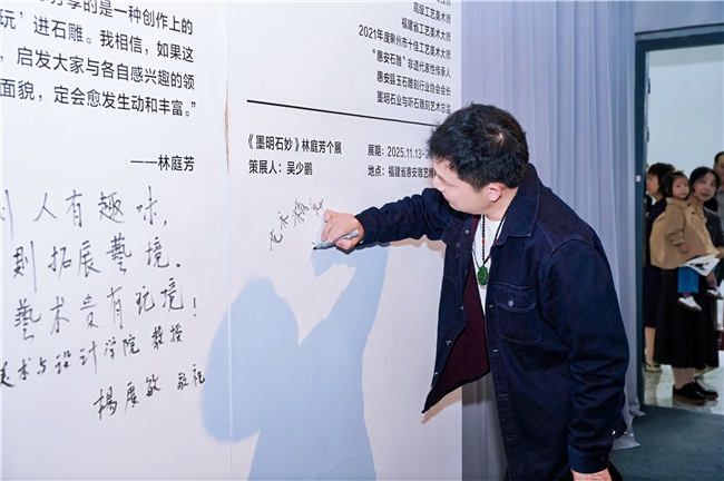 2025年11月13日,“这次展览,除作品展示外,我更想分享的是一种创作上的‘摸索’:把中国水墨书画的意趣‘玩’进石雕。我相信,如果这种尝试能引发些许共鸣,打开思路,启发大家与各自感兴趣的领域进行多元对话,那么惠安石雕的面貌,定会愈发生动和丰富。”——林庭芳