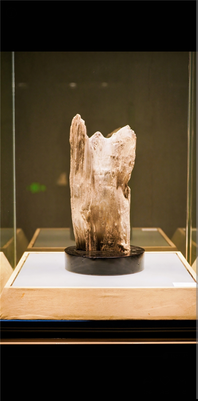 如其工作室一角,曾静置着一块珍藏十余年的木化石。石纹似云水激荡,质地坚硬如铁。过去十余年他始终“未敢动刀”,直到去年夏夜,心有所感,仅以数刀勾勒出老子仰首望天的姿态,将“大道至简”化为具象之境。