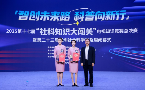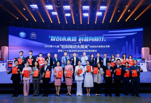 第十七届“社科知识大闯关”电视总决赛压轴登场,把本届科普周推向高潮。赛事9月启动,社会各界广泛关注、踊跃报名,比赛通过网络直播,吸引受众达上百万人次。经过初赛和半决赛的层层选拔,来自深圳市各行业各领域的10支队伍最终脱颖而出,成功晋级总决赛。决赛设置了“奋勇争先”“一触即发”“心有灵犀”“机智过人”“巅峰对决”等环节,题目聚焦新时代科技创新思想与战略、深圳科技创新发展与成就、智慧城市与数字深圳建设等内容。选手们沉着应对、精彩竞答,展现出了扎实的知识储备、出色的应变能力、深厚的社科素养与良好的精神风貌,赢得了现场阵阵掌声。经过近两个小时的激烈角逐,最终由来自深圳市鲲鹏股权投资管理有限公司的“鲲鹏智创队”摘得桂冠,深圳博物馆志愿服务队的“深南大道队”获得亚军,文理实验学校(集团)科创学校的“语润新知队”获得季军。
