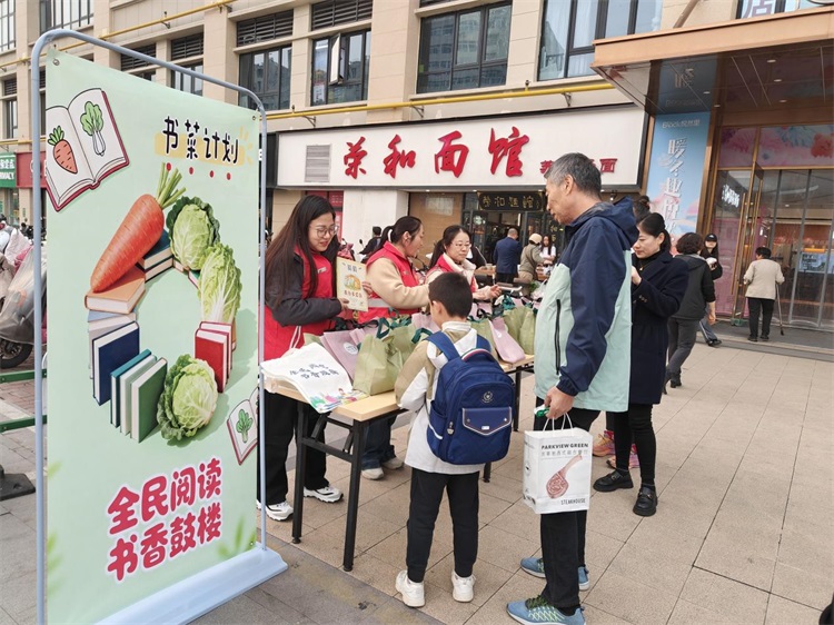 另一边,“以书换蔬”区域洋溢着爱与温暖的气息,活动参与者可携带家中一本闲置书籍,兑换一份蔬菜礼包。所有募集书籍经过整理消毒后,将捐赠给辖区困难儿童,让爱心在书本间传递,进一步助力全民阅读。“用旧书换到了一袋新鲜蔬菜,还能让旧书流通起来,使书籍重新发挥作用,这个活动太有意义了!”带着孩子前来参与的王先生表示。