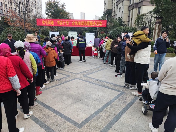 11月14日,拾屯街道组织开展“书菜计划”全民阅读推广活动。“书菜盲盒”区域始终排着长队,居民们带着好奇与期待前来,又怀着惊喜与满足离去。现场将书籍按“食材类型”划分图书品类,如“蔬菜类”对应生活实用书、“水果类”对应小说散文、“谷物类”对应经典名著,包装采用牛皮纸蔬菜袋,贴上“食材标签”。居民携带家中一本旧书,可换取一份新书盲盒,激发读者盲选兴趣。“我将孙子看过的绘本带过来,希望这些书能传到更多孩子手里,同时换一些孩子没看过的书,让孩子持续养成阅读的好习惯。”住在街道多年的张阿姨笑着说,她手中的布袋里装着孙子的儿童读物。