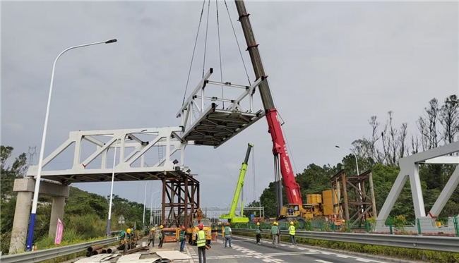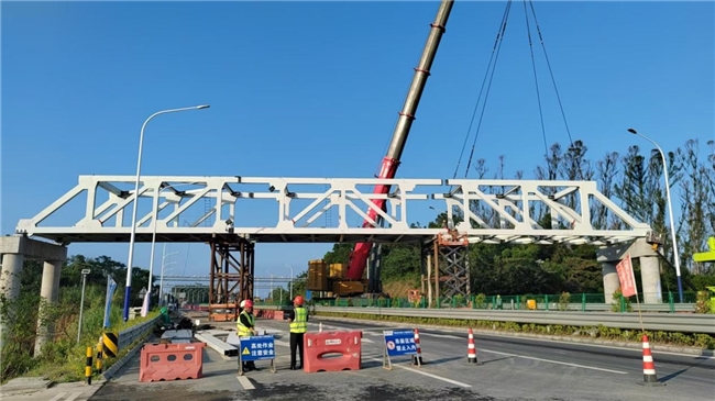 11月5日,水电六局基础设施公司阳西项目长距离运输廊道跨滨海旅游公路段钢桁架分段吊装工程圆满完成,为项目建设按下“加速键”。