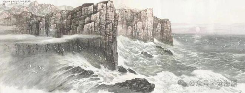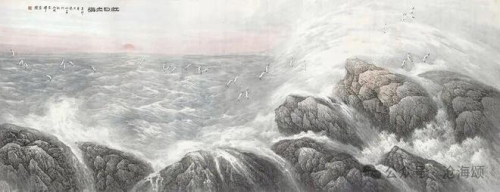 宋明远的海洋画派,将海洋从背景推至前台,使之成为独立的、唯一的审美主体。他系统地研究和创造了一套表现海洋的笔墨语言。