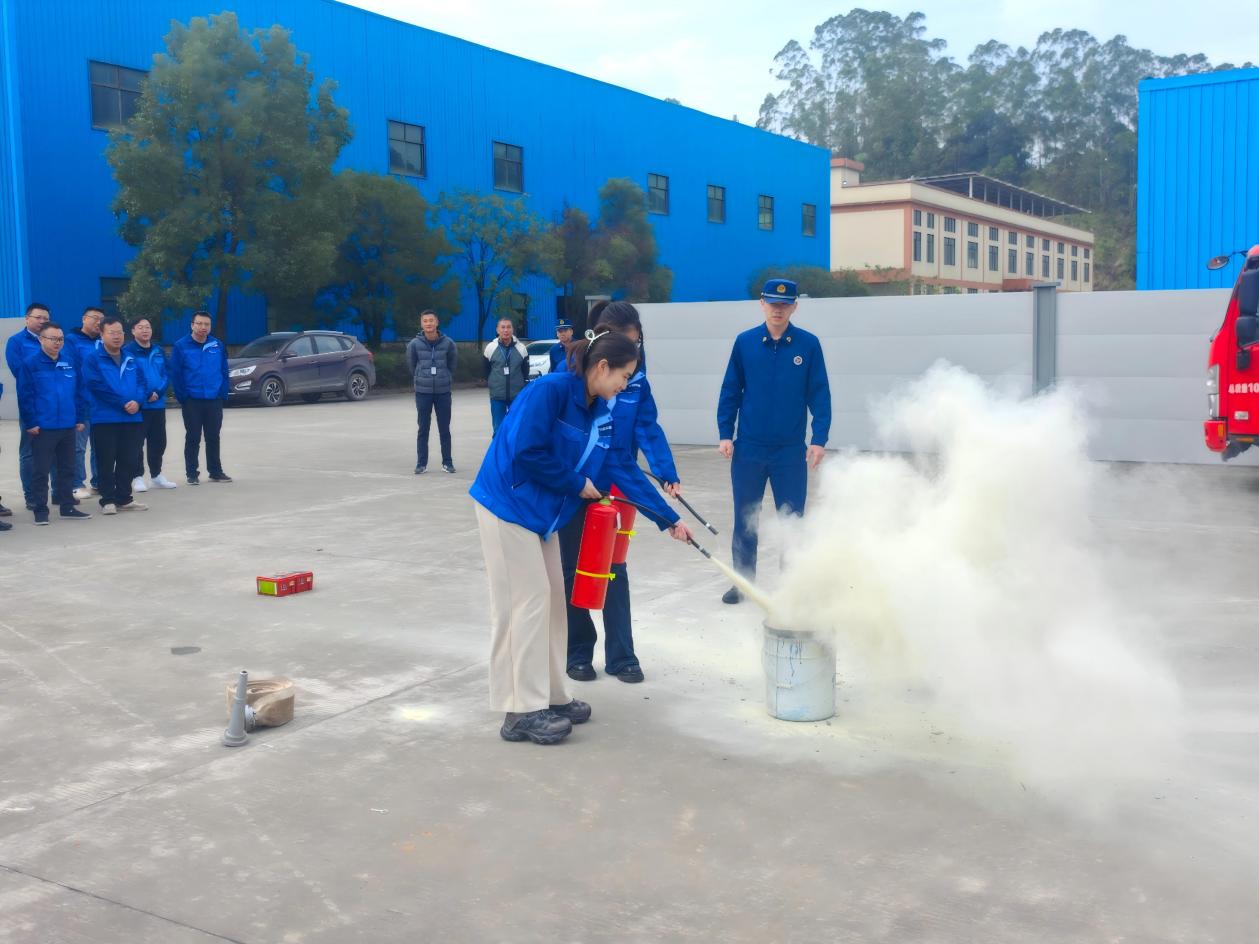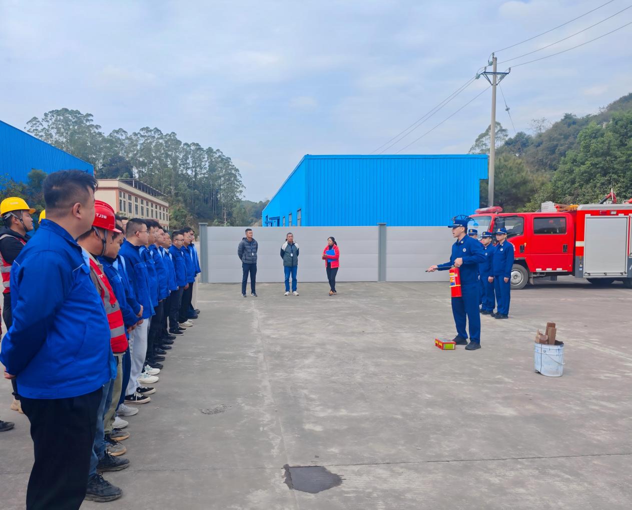 演练前,消防大队教官结合工程项目施工特点,通过实物演示、现场讲解等方式,系统传授安全知识。重点指导大家正确识别灭火器类型、掌握“提、拔、握、压”使用步骤,详细演示防毒面具佩戴要点及紧急情况下的呼吸调节技巧,同时针对施工现场消防栓布局、水带连接接口对接、水压控制等实操难点进行手把手教学,确保每位参训人员都能熟练掌握操作流程。
