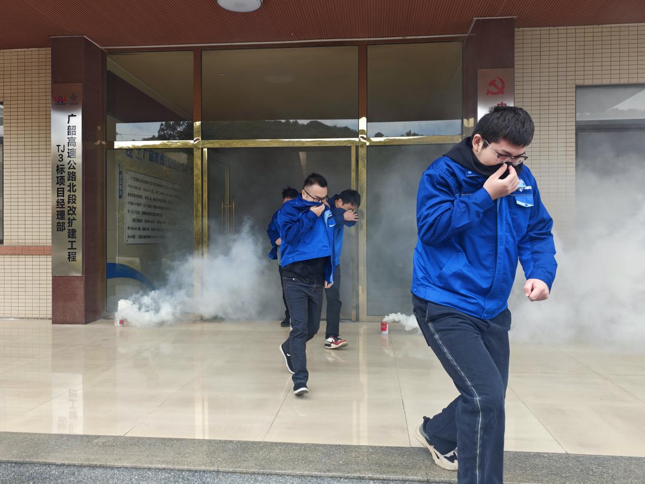 实操环节后,逃生演练正式启动。模拟施工现场突发火灾、烟雾弥漫场景,在工作人员的引导下,参训人员弯腰低姿、捂住口鼻,按照预定疏散路线快速有序撤离至安全区域,整个过程紧张有序、配合默契。