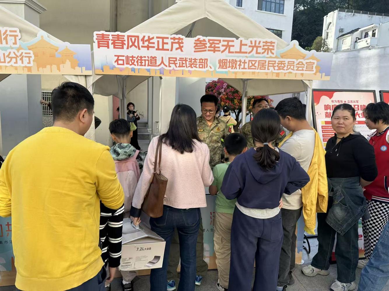 在纪念中国人民抗日战争暨世界反法西斯战争胜利80周年的特殊年份,石岐街道以“烟火焕新·活力共治”2025年香山城市主理人生活文化集市为平台,于11月22日在孙文西路步行街香山剧场片区,同步开展了一场主题鲜明、形式生动的征兵宣传活动。此次活动由石岐街道人民武装部联合烟墩社区党委共同策划,以“青春风华正茂·参军无上光荣”为主题,巧妙依托市集人流与文化氛围,推动国防教育贴近市民生活,激发适龄青年投身国防的热情。