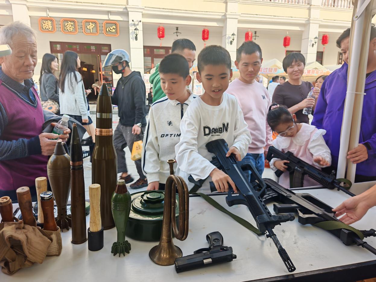 本次征兵宣传作为香山古城市集活动的重要组成部分,与主理人创意摊位、非遗手作展示、社区舞台演出等环节相互呼应,形成“文化搭台、国防唱戏”的融合场景。市集现场,红色主题展板与军事装备展示区成为焦点,吸引众多市民驻足。仿真枪械、手榴弹等装备在工作人员讲解下,让青少年近距离感受国防科技的魅力,不少家庭携子参与,在互动中埋下爱国强军的种子。