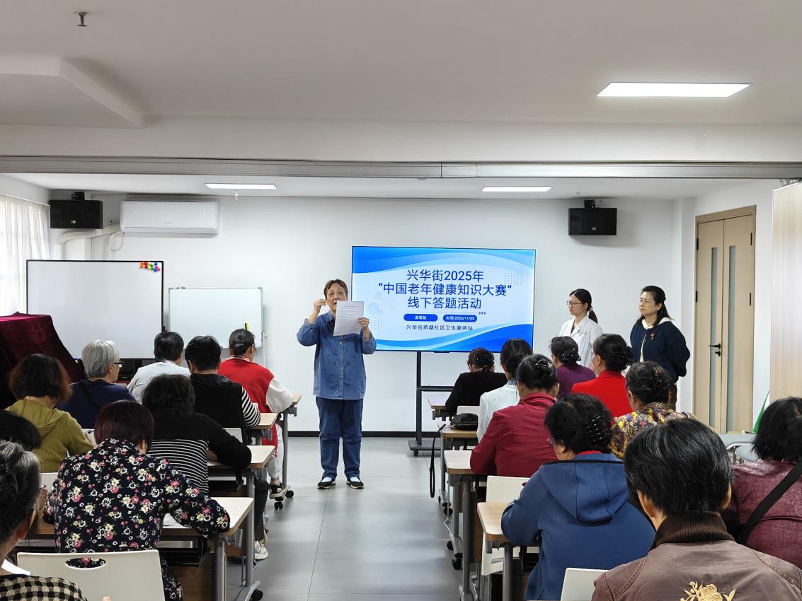 兴华街道公卫委把大赛纳入“民生服务”清单,街道领导亲自过问,兴华街道公共卫生委员会、11个社区、老年协会、老年学校、“老老问安队”五线并进,形成“1+11+3”组织架构(1个办公室、11个社区、3个涉老社团)。10月21日开展动员后,各社区3天内完成“拉网式”发动,累计发放邀请函200份,最终确定410名“银龄考生”,平均年龄71.4岁,最大93岁。
