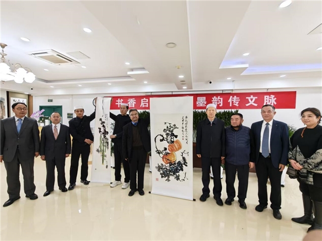 活动中向中国经学院图书馆赠送了,多位书画家创作的十六米长的民族团结书画长卷 ,以铸牢中华民族共同体意识为主题的书画作品5 8幅。中国伊协会长杨发明,向中国伊协理事甘肃伊协副会长丁目迪颁发了感谢匾额,向书画家代表颁发了捐赠证书。