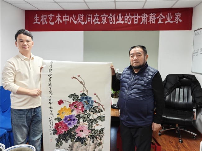 在慰问交流中,丁目迪委员充分肯定了该企业在京为甘肃争了光,并提出未来在甘味出陇、出海中做出新成绩。艺术家们向企业家及员工赠送了书画作品,并现场挥毫泼墨,以表达对家乡企业家的敬意。