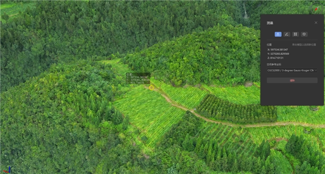 针对山区信号弱、安全隐患多的问题,项目采用倾斜摄影技术构建三维实景模型,支持任意点坐标及高程即时查询。经测试,模型东距、北距误差可忽略,高程误差控制在10厘米内,完全满足非关键测量需求。管理人员无需冒险攀爬即可获取精准数据,大幅降低人力成本与安全风险。
