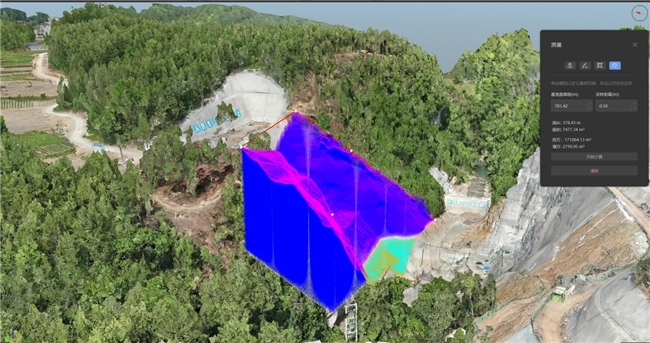 倾斜摄影模型延伸至施工便道规划与场站规划计算领域。山区便道设计中,模型可显示未标注小路并自动测距,同步检测限高、转弯半径等通行要素。项目团队通过模型发现狭窄路段无法满足设备通行,及时调整路线。在项目驻地规划中,直接在倾斜摄影模型上进行规划,方便高效且能直接计算出填挖工程量,为场站选址提供最优解。