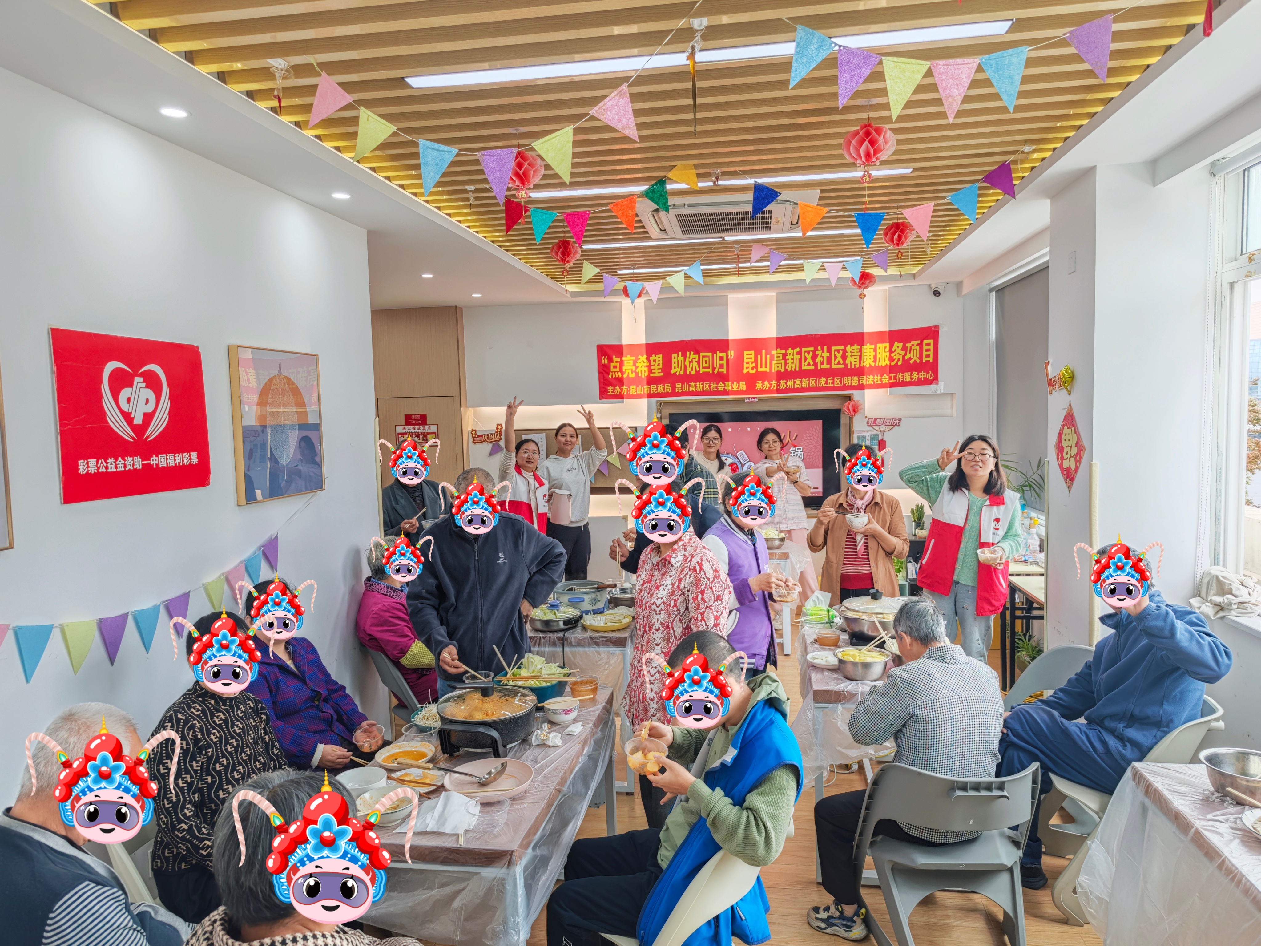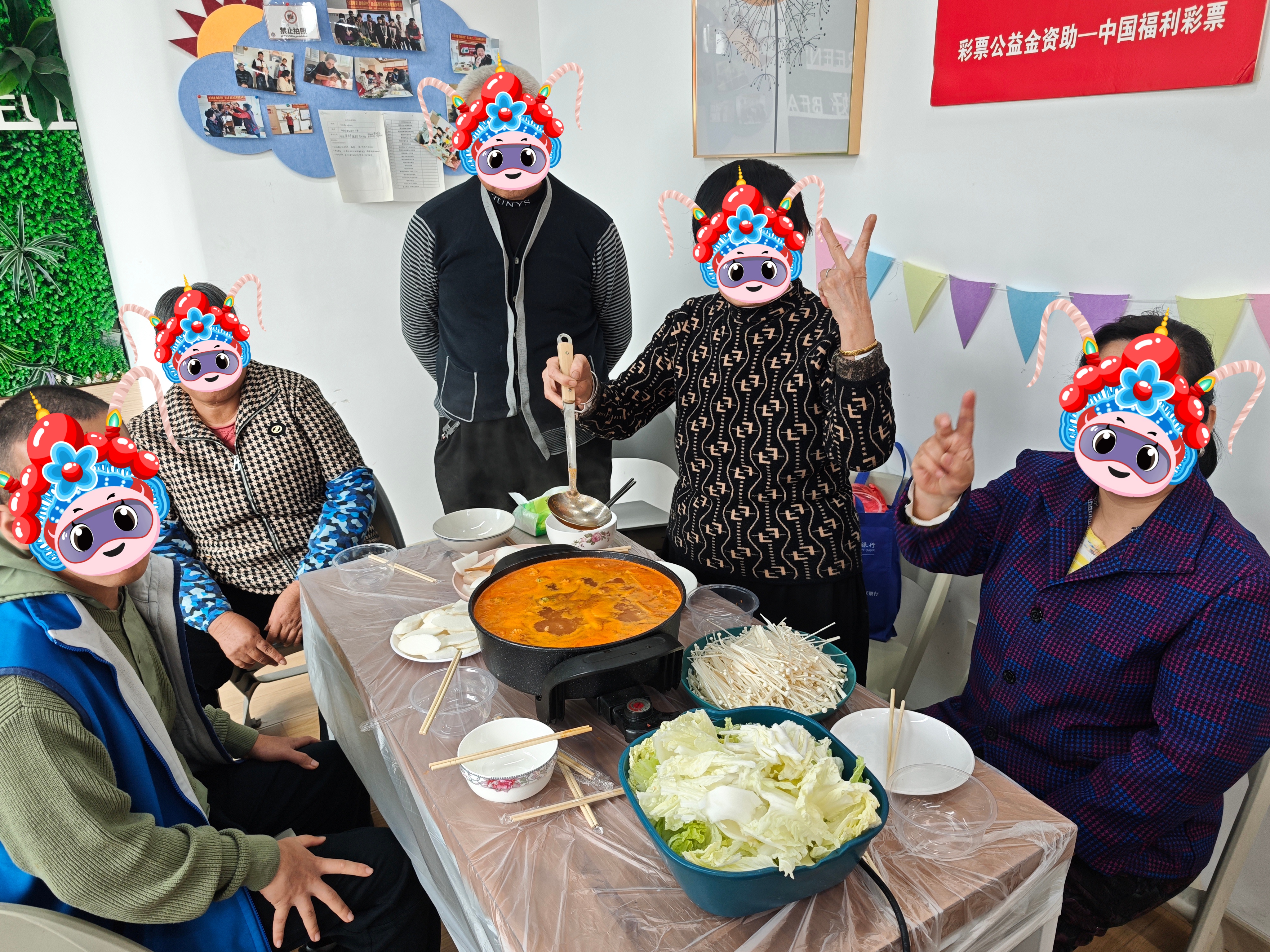 “锅开啦,可以下菜了!”氤氲热气中,大家围坐共享美味。你帮我夹菜,我为你添汤;这桌锅未沸,那桌已热情招呼:“来我们这儿煮!”在社工和同伴辅导员的引导下,新老伙伴彼此照顾,像一家人般温暖自在。