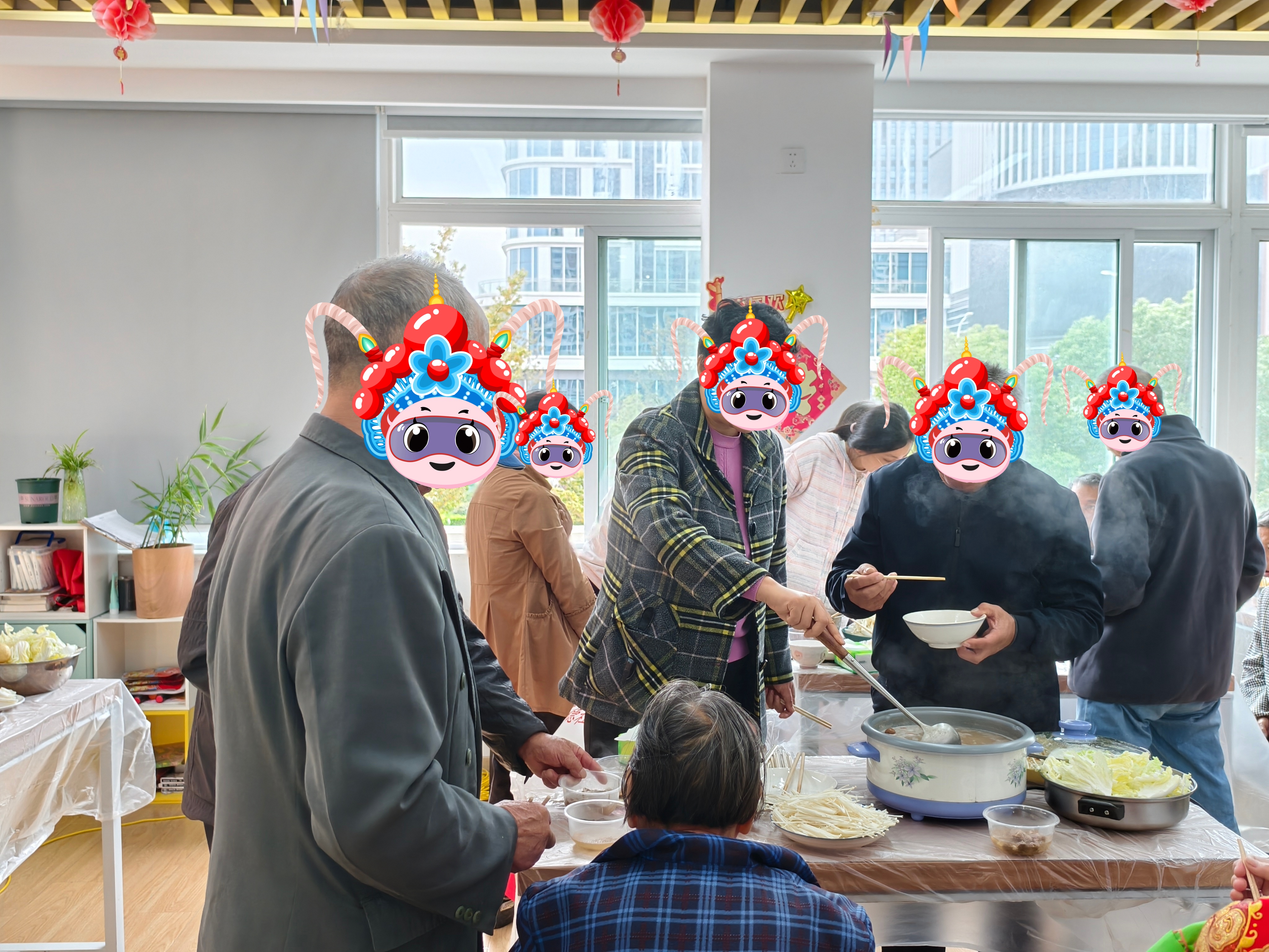 餐后,戴阿姨大方展示精心排练的舞蹈,音乐响起,掌声不断,她的舞步愈发轻快。有伙伴感动地说:“我们家很少吃火锅,谢谢你们邀请我们老两口。”另一位笑着接话:“驿站也是我们的家。”