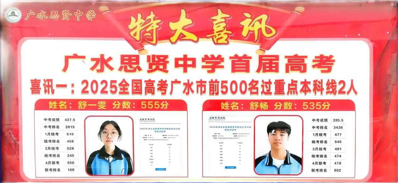 之于学生:奠基健全人格,引领价值成长。 四贤文化为学生树立了鲜活的精神标杆。“勤学”之风助力学业精进——2025年学校高考本科上线率突破10%,物理方向2人达重本线、38人超本科线。其中,舒一雯同学(高考555分)从中考市排名2815位跃升至联考168名;舒畅同学(高考535分)从中考3438名提升至联考602名,正是“勤学”精神的真实写照。“清廉自律”塑造了诚信正直的品格,“担当有为”培育了社会责任与家国情怀。学生不再唯分数是图,更注重“立德修身”,努力成长为德才兼备的时代新人。