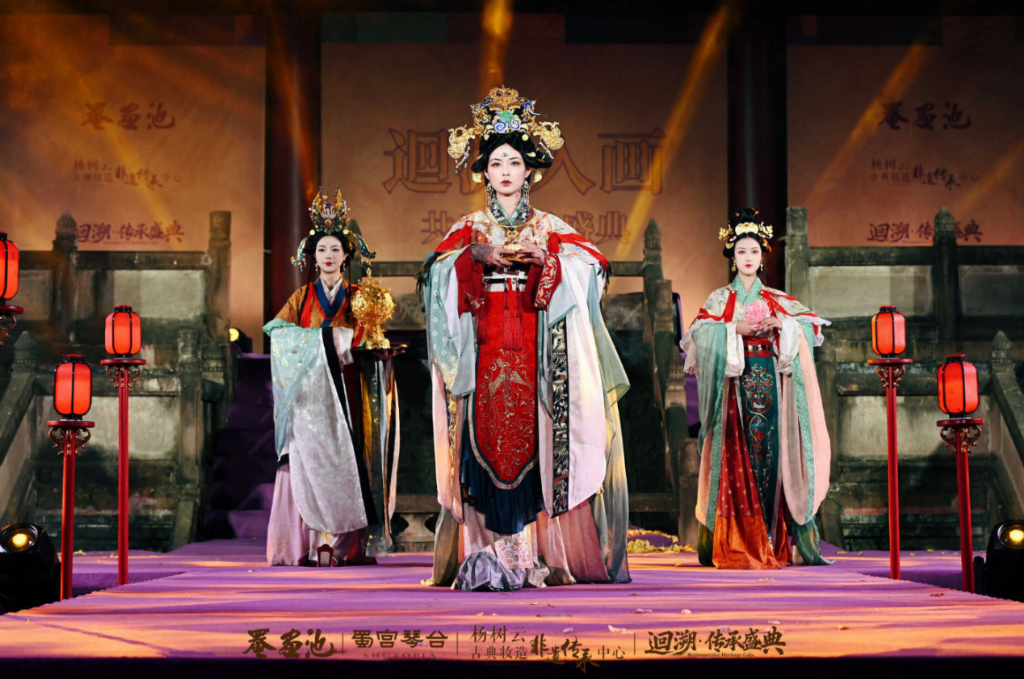 当晚的核心环节——“迴溯·传承”主题走秀,直观展现了古典装造产业的蓬勃生命力。从秦汉的椎髻、魏晋的杂裾,到盛唐的花钿、大明的立领,超百位创作者依据严谨考据,复原并演绎了历代经典造型。这场大秀本身,就是古典装造设计、服饰制作、妆发技艺、舞台演绎等环节的集中展示,其背后连接着设计、培训、服饰道具生产、活动策划、文旅体验等一系列市场环节。